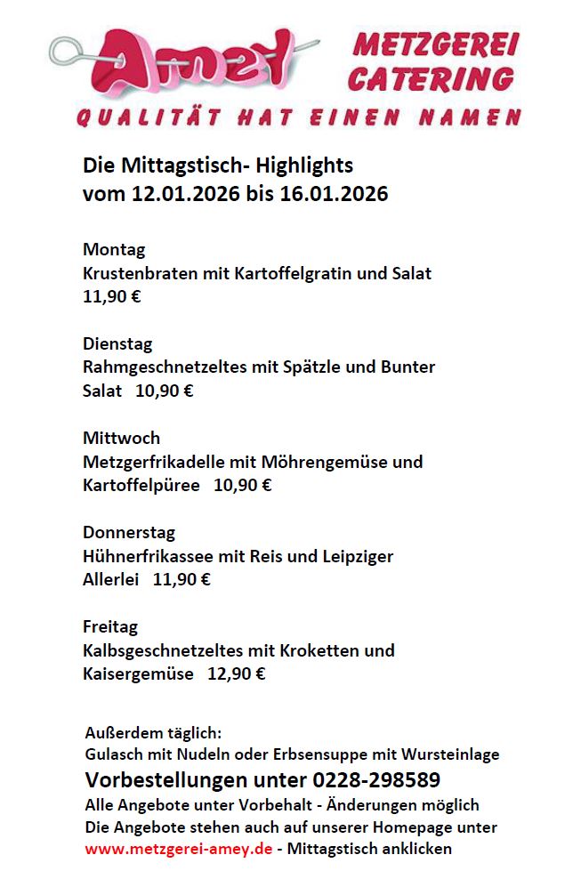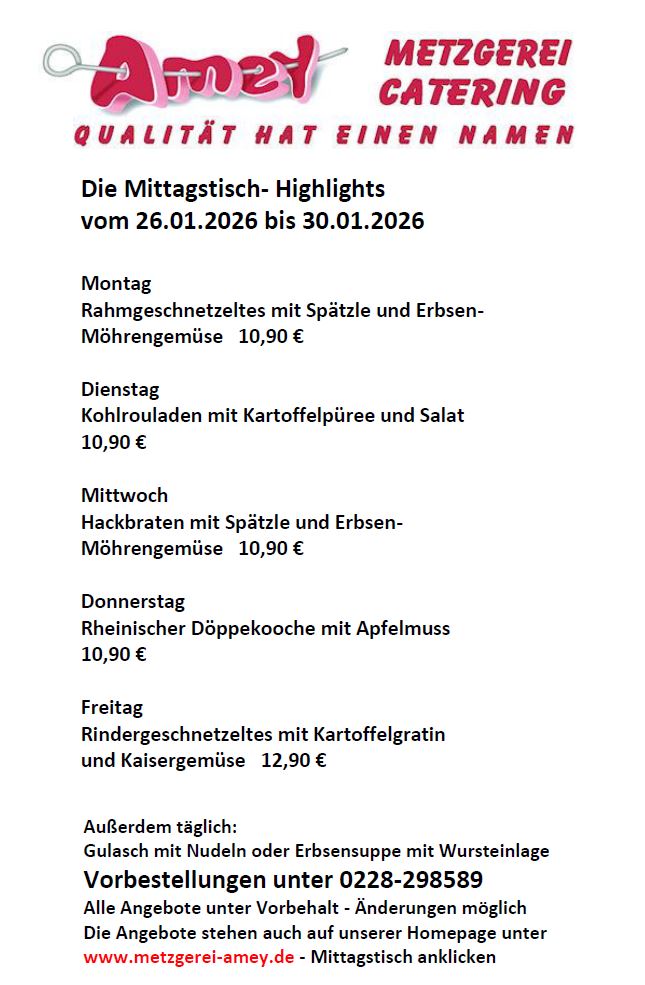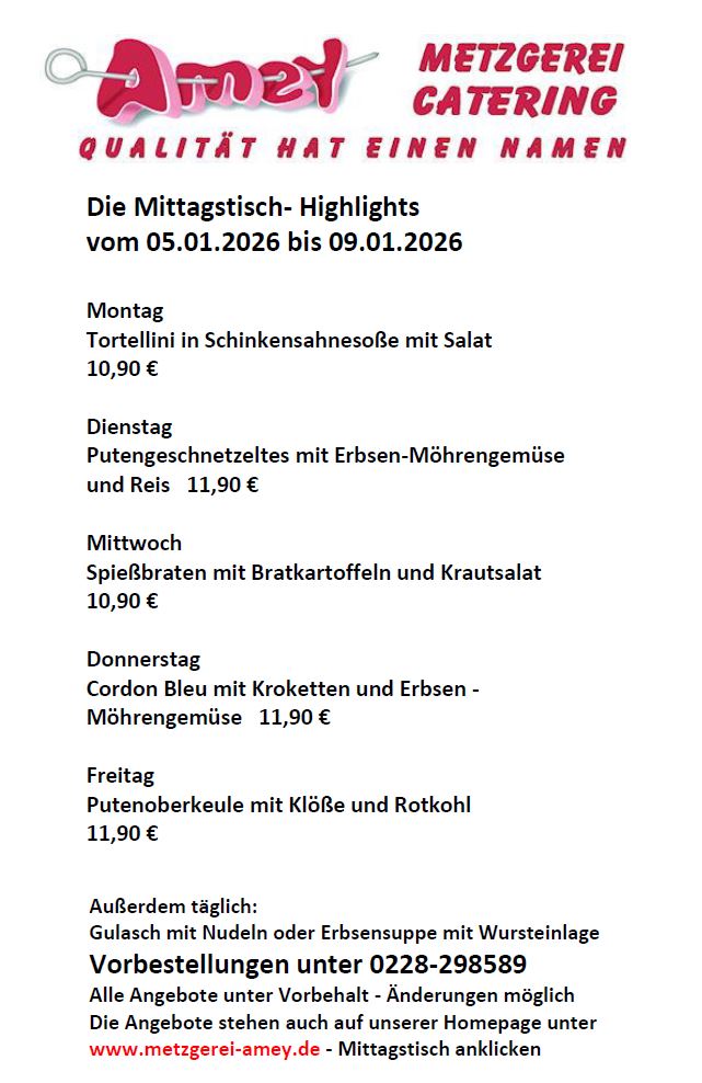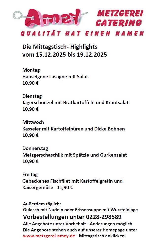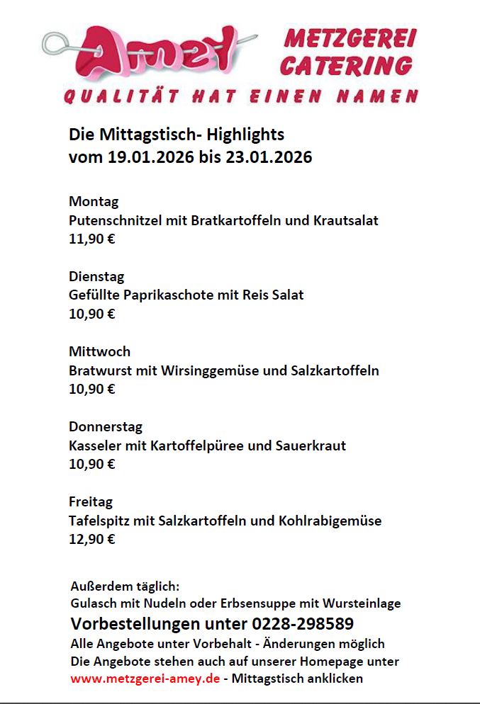 Der aktuelle Speiseplan unseres regional bekannten Mittagstischs.